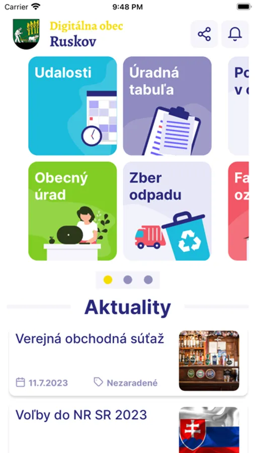 Na jednom mieste aktuality, udalosti, informácie z obecného úradu, počasie, kalendár zberu odpadu, história, farské oznamy, fotogaléria, podnety, užitočné návody, zasielanie dôležitých notifikácií a všetky ostatné informácie pre občana.