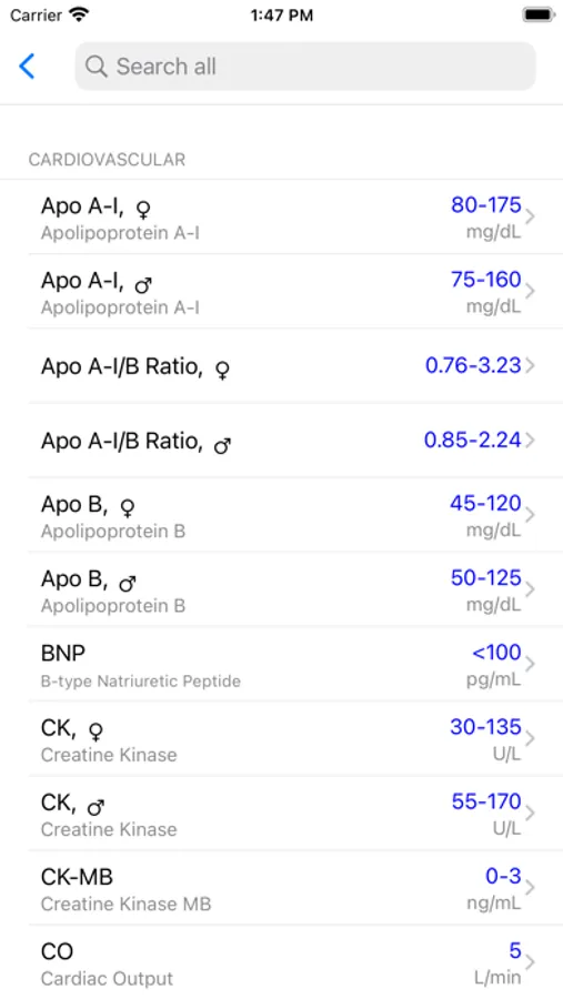 LabRange is free app without any ad which you can use to easily see normal lab ranges.