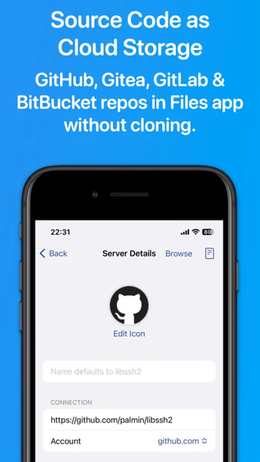 Source Files is a faster way to access GitHub, Gitea, GitLab and BitBucket from the Finder and Files app without having to clone repositories or commit changes.