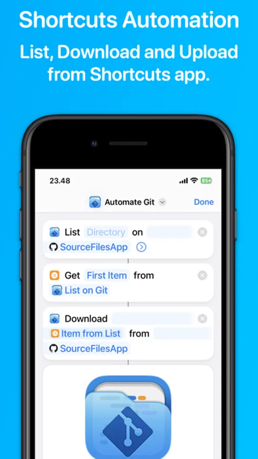 There is rich support for automation with Shortcuts actions to List, Download, Upload and Move files.