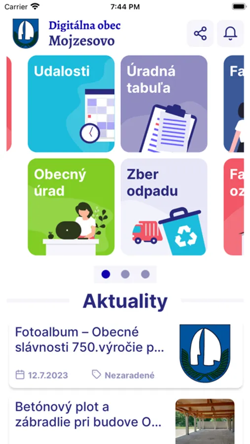 Na jednom mieste aktuality, udalosti, informácie z obecného úradu, počasie, kalendár zberu odpadu, farské oznamy, fotogaléria, história, podnety, užitočné návody, zasielanie dôležitých notifikácií a všetky ostatné informácie pre občana.
