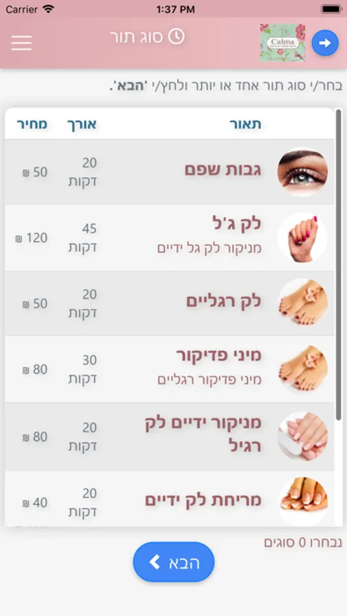 באפליקציה אפשר לקבוע תור, לנווט באמצעות Waze ולפנות אליי באמצעות WhatsApp.