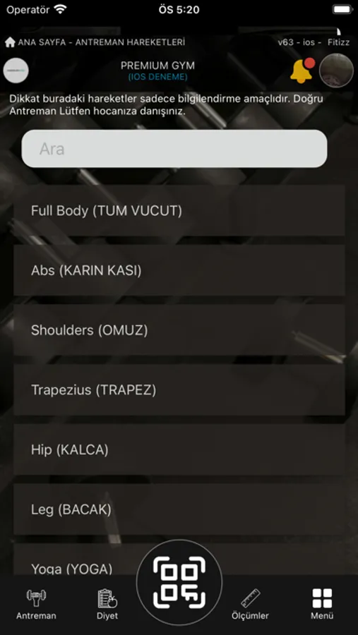 Antrenmanlar: Bu bölümde, spor kulübünde yapacağınız 1500'den fazla egzersizi görsel olarak inceleyebilir, özel antrenman programınızı ve günlük bölgesel gelişiminizi takip edebilirsiniz.