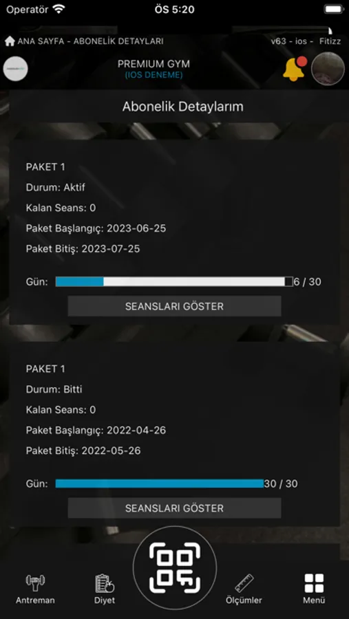 Abonelikler: Spor aboneliğinizi takip edebilir, kaç gün kaldığını, kalan seansları görebilir, mevcut paketler ve fiyat listeleri hakkında bilgi edinebilirsiniz.