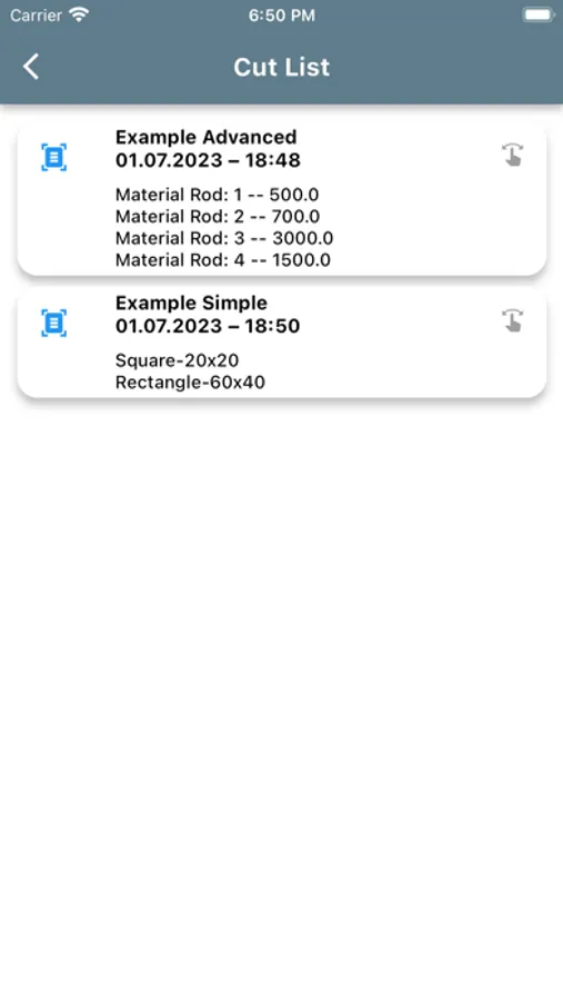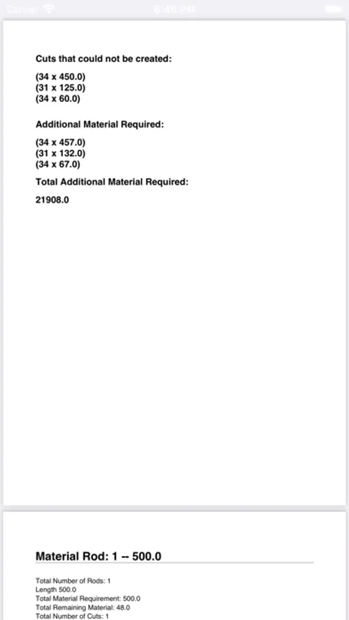 Advanced Mode: Enter up to eight material lengths you have in stock, and CutMetryx calculates which parts you can cut from the existing material. The app also informs you which cuts are not possible and what additional material you need for these.