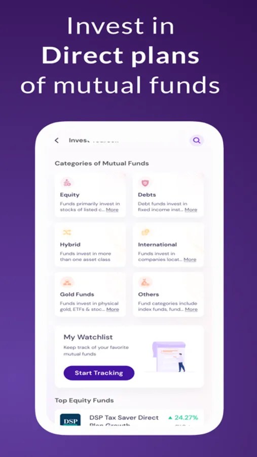 - Choose from 5000+ direct mutual fund schemes
