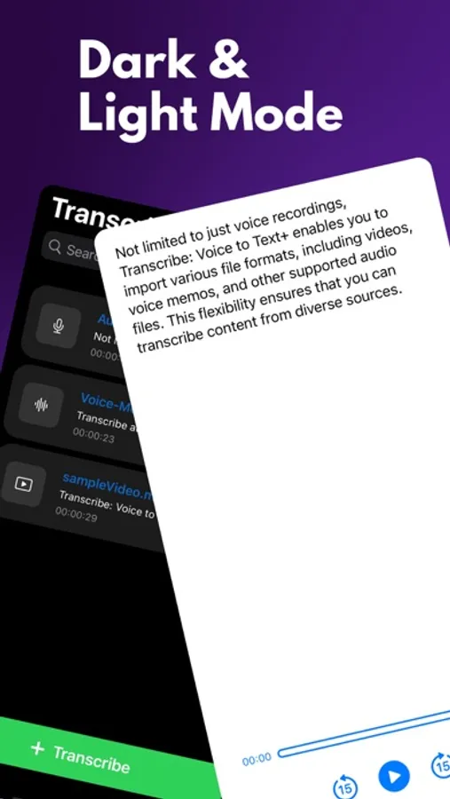 Transcribe: Voice to Text+ is a powerful and intuitive app that revolutionizes the way you convert speech to text. With its advanced technology, you can effortlessly transcribe various audio and video files into accurate and editable text, making it a must-have tool for students, professionals, journalists, and anyone seeking a convenient and efficient transcription solution.