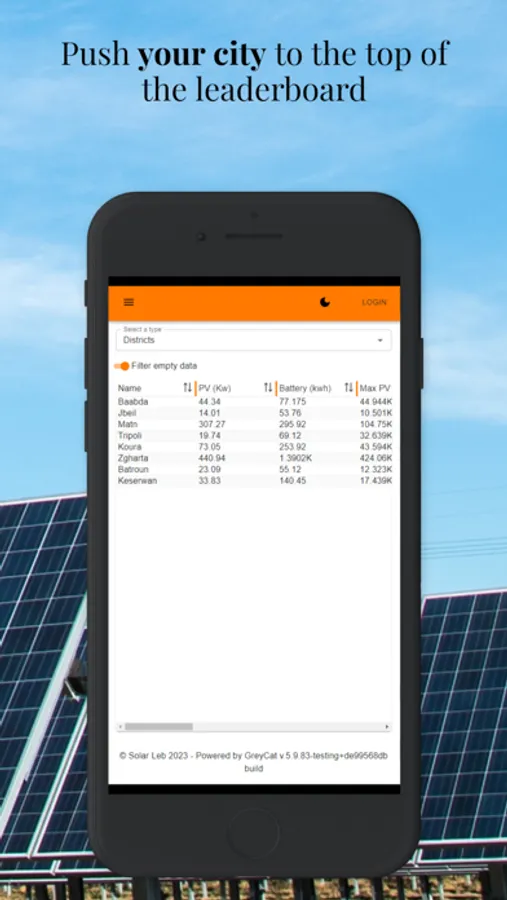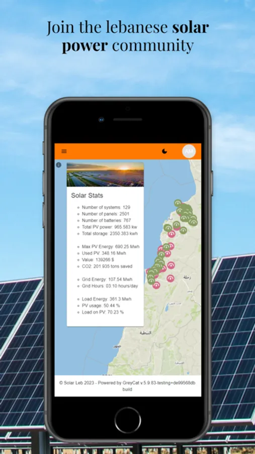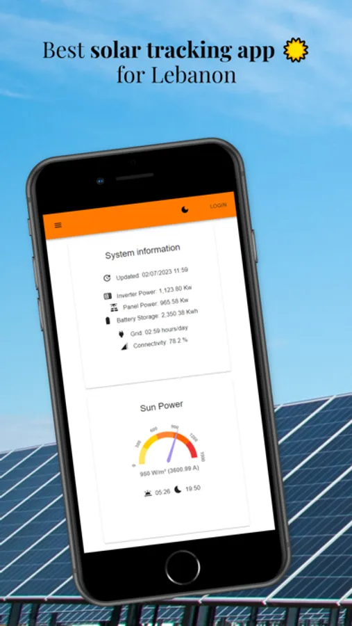 Solar energy monitoring and management app for Lebanon. The app allows you to monitor and track solar energy production, unused solar energy, value of the total energy produced and battery status for DESS and DEYE data loggers.