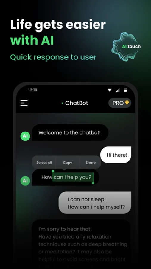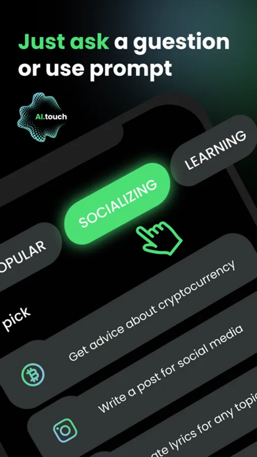 "Welcome to Touch AI - Chat AI Bot Ask GPT, the future of interactive learning and communication. Our app is designed to be your personal AI assistant, ready to chat, answer questions, and help you learn in a dynamic and engaging way.