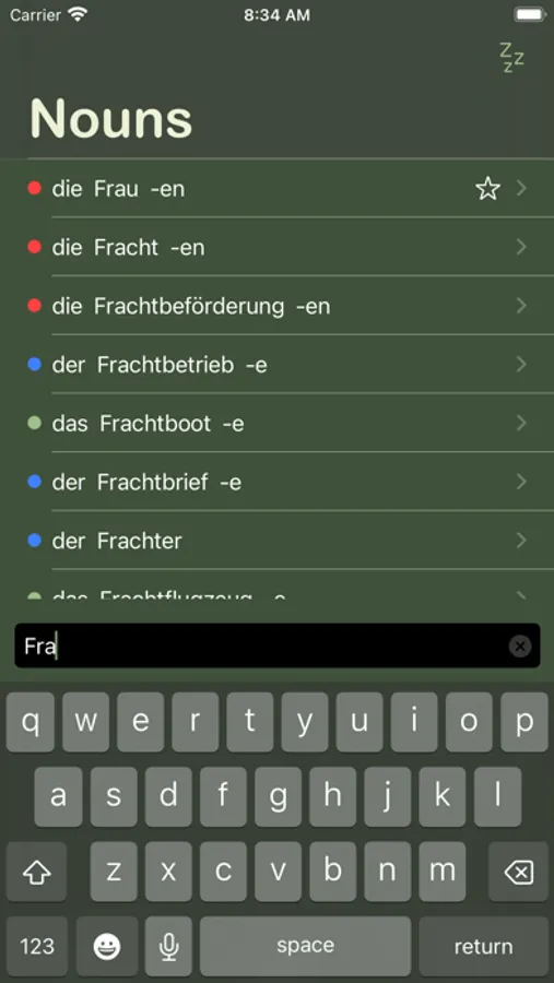 The simplest way to find the article and the plural form of a German noun. You don’t even have to tap any button, just open the app and start typing. Super fast, super simple. Free, without ads.