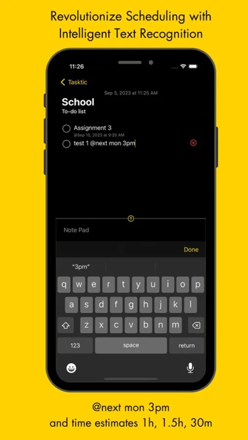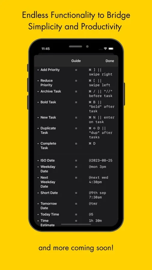- Scheduling a task? maybe for @tmr 9:12AM or @next wed 3pm or @4th sep 5pm? That’s all you need to do.