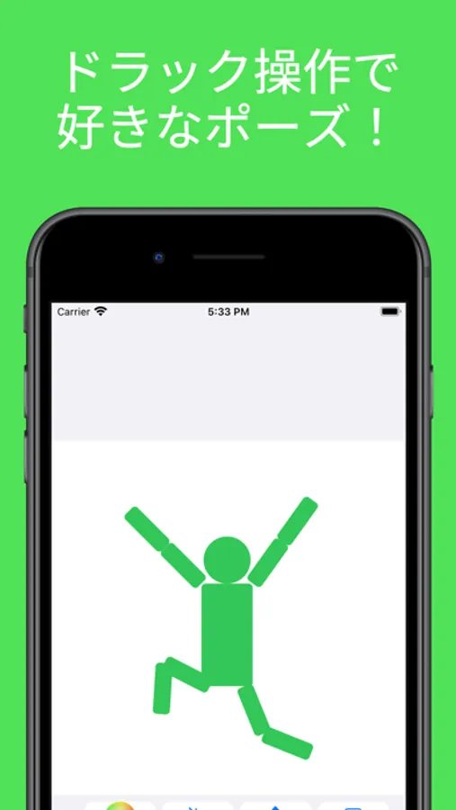アプリでは、ピクトグラムの各パーツを自由にドラッグして位置を調整することができます。ユーザーのアイデアやイメージに応じて、独自のポーズを作り上げることができます。