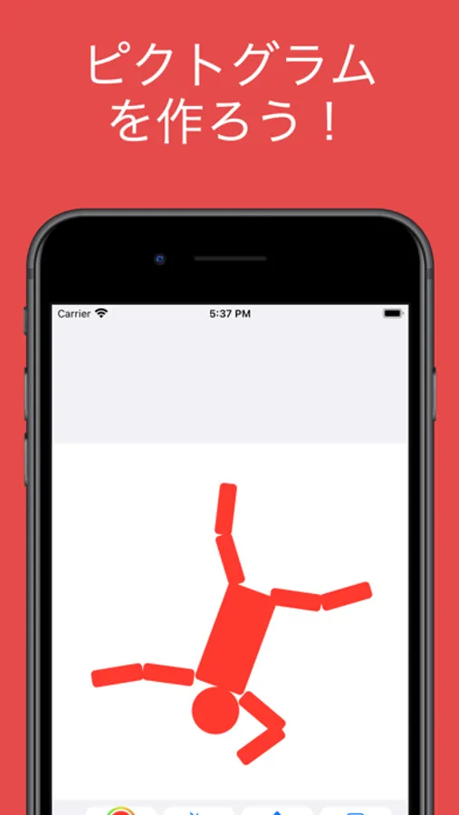 ご意見や感想をお待ちしております。皆様の声を反映し、さらなる改善と進化を図ってまいります。ありがとうございます。「ピクトグラム メーカー」は、スマートフォンのアプリ内で手軽にピクトグラムを生成できる、優れた特徴を持つアプリです。お好みの色やポーズでピクトグラム画像を作成できます。操作方法もシンプルで、指を使ってドラッグするだけで自由なポーズを作らせることができます。パレットボタンをタップするとピクトグラムの色を変更できます。また、パレットボタンの隣にあるボタンを使えば、ピクトグラムのフレームが可視化されます。これは、ピクトグラムの体が重なっている場合に特に便利です。最後に、右下の保存ボタンをタップすると、作成したピクトグラム画像を本体のアルバムに保存することができます。ぜひ「ピクトグラム メーカー」をお試しください。