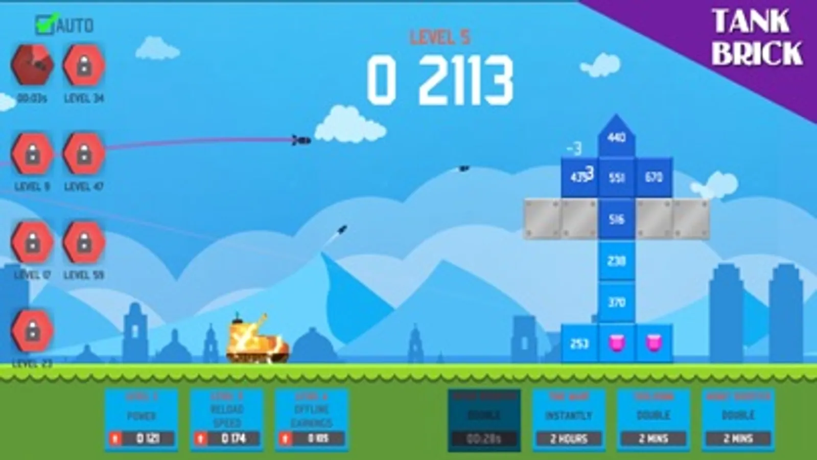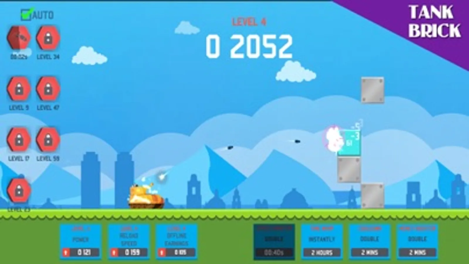 Use your finger to tap or your mouse to point and click. Your job is to keep a steady stream of shells hitting the blockades. As you fire you will gain money that you can use in real time to upgrade the various aspects of your tank.
