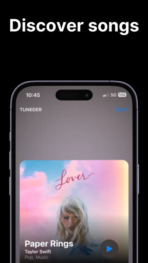 Tuneder's the easiest and fastest way to find new songs. Swipe through songs as fast as you want, listen to previews of them, and save them to a playlist in your Apple Music library, while Tuneder seamlessly learns what kind of songs you like in the background.