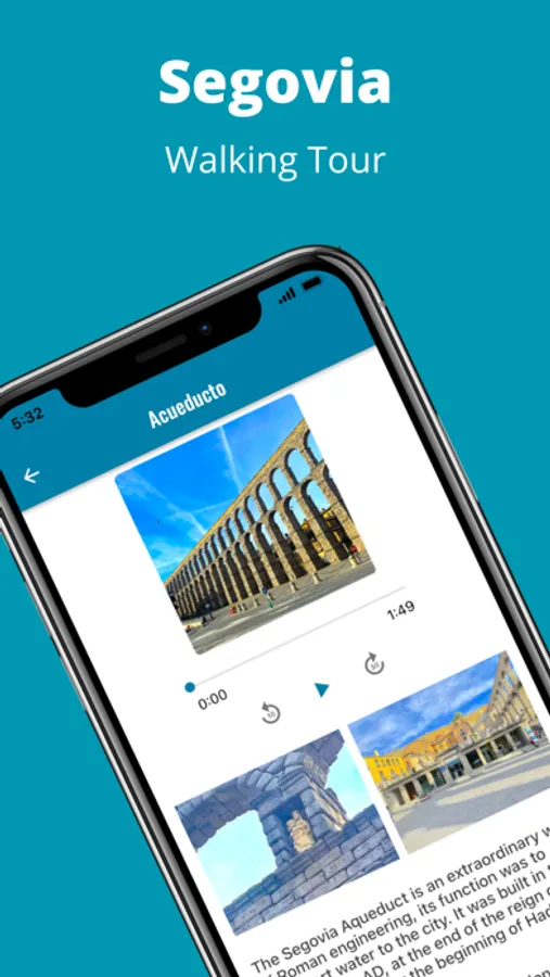 2.- A simple text and audio description of the main monuments on the route and their history. So you can listen while you do the tour.