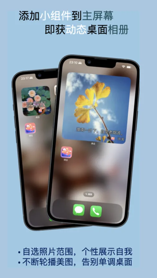 2. 小组件:可以添加到主屏幕,不断轮播相册和匹配的诗歌。