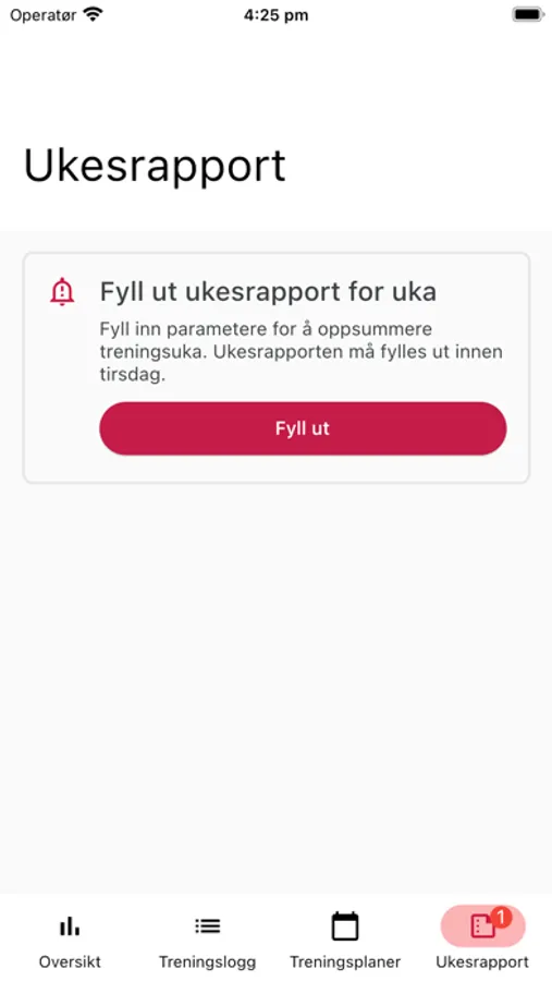 Hver uke fyller du ut en ukesrapport med kritiske parametere som søvnkvalitet, motivasjon, og stress, noe som hjelper deg å danne et helhetlig bilde av treningsuken din. Få varslinger hvis treningsbelastningen er høyere enn anbefalt, og oppdag hvordan du kan oppnå jevn progresjon.
