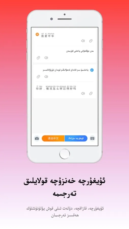 App中支持翻译模块支持中文,维吾尔文与哈萨克文。