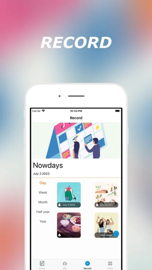 Record daily plan goals and major categories of days/weeks/months/years.