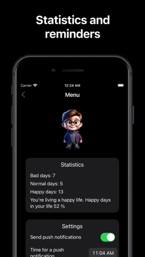 - Statistics: Keep track of your mood dynamics based on accumulated data. Statistics help you see how happy you are living your life.