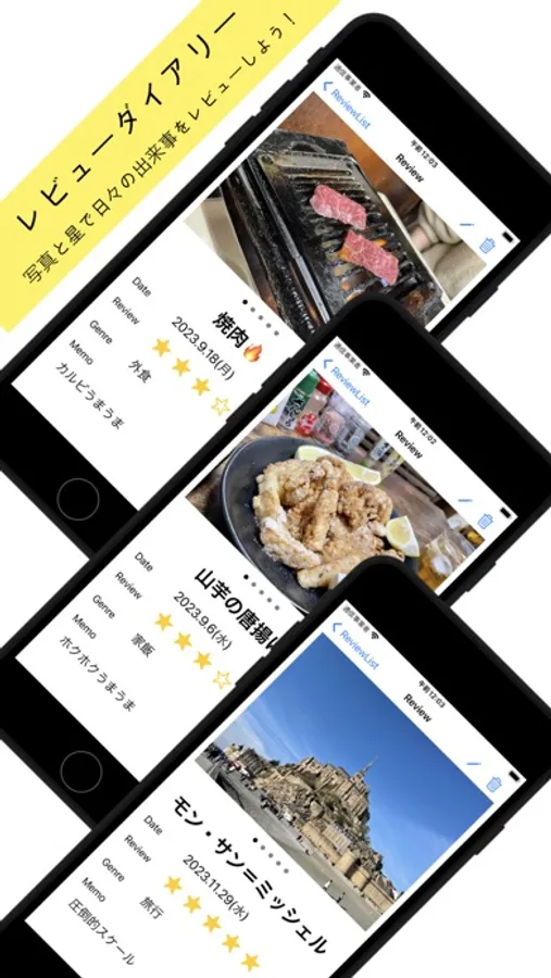 レビューダイヤリーを使って、日常の出来事や経験に対してレビューをつけることができます。仕事や勉強、趣味や旅行など、あらゆる面での経験を振り返り、評価することができます。レビューダイアリーはシンプルで直感的な操作と使いやすいレイアウトで、ストレスなくアプリを活用することができます。