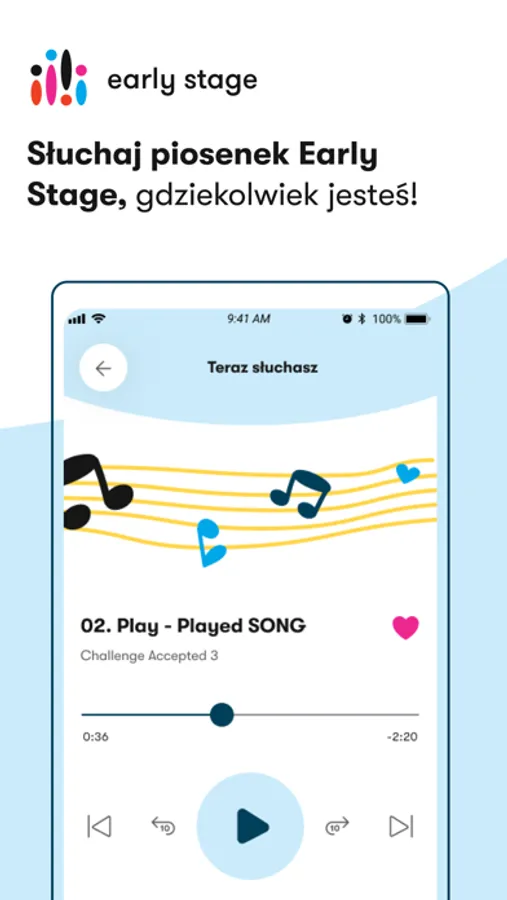 Wszystkie piosenki i utwory, które usłyszysz w tej aplikacji są autorskie – powstały z myślą o uczennicach, uczniach i lektor(k)ach Early Stage, aby nauka i nauczanie języka angielskiego były dla nich czystą przyjemnością.