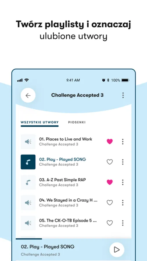 Któraś piosenka szczególnie wpadła Ci w ucho? A może chcesz pogrupować utwory wg własnego pomysłu? Oznaczaj ulubione nagrania serduszkiem i twórz swoje playlisty, aby sprawnie powracać do wybranych melodii.