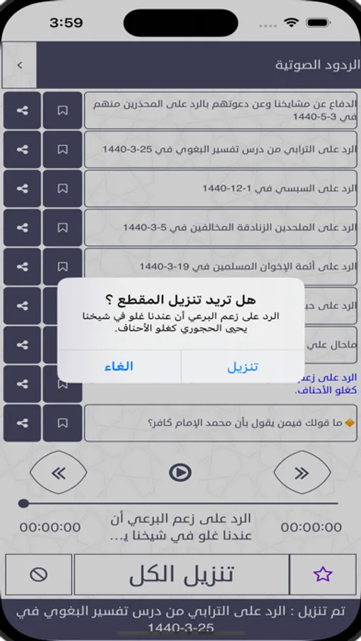4 - امكانية تنزيل صوتيات التصنيف كاملا بضغطة زر واحدة .