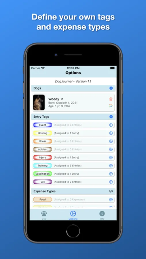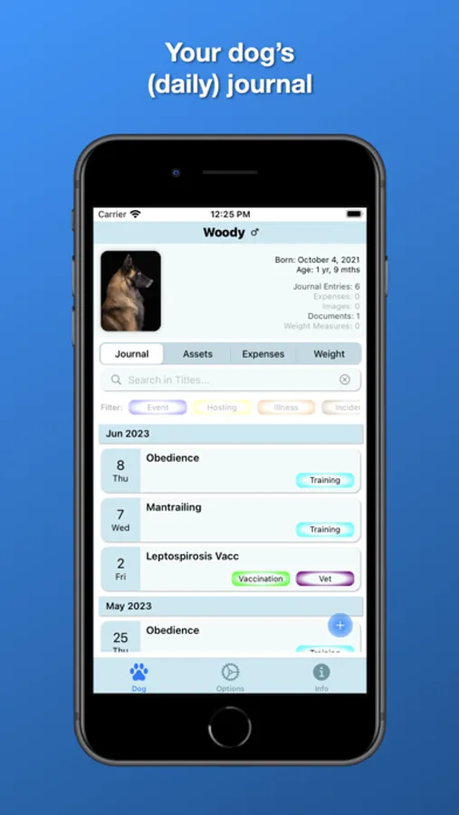 To get unlimited Journal Entries, Expenses and Measures, a one-time purchase is required which unlocks DogJournal permanently without any further costs.
