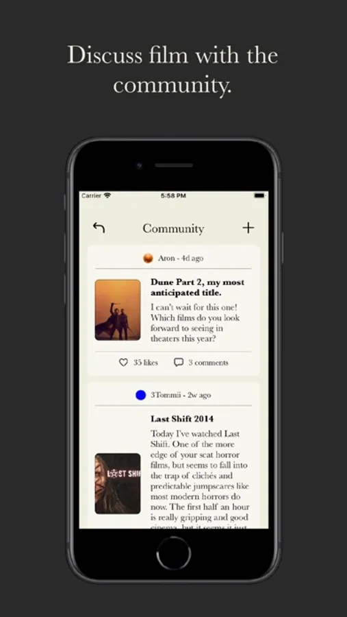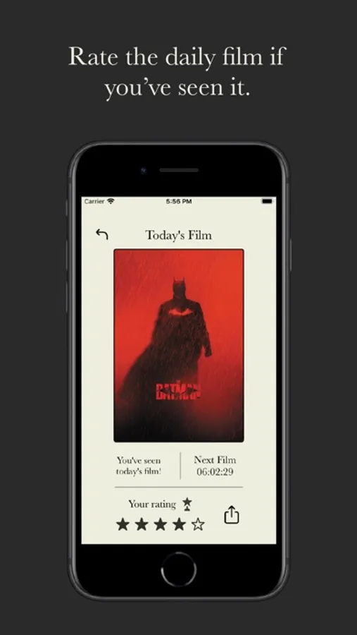 Every day, a new daily film appears in Widescreen. Start guessing the title based on the frames of the film showcased to you. Did you get it? This will allow you to rate the movie, resulting in a review-bomb-free and honest ranking of films. Have you not seen it? No worries, add it to your watchlist and go see it later! Add your friends to see what they thought of today's film! You can also chat privately with your friends to discuss the latest films extensively, or take the discussion to a larger scale with 'Community Posts'.