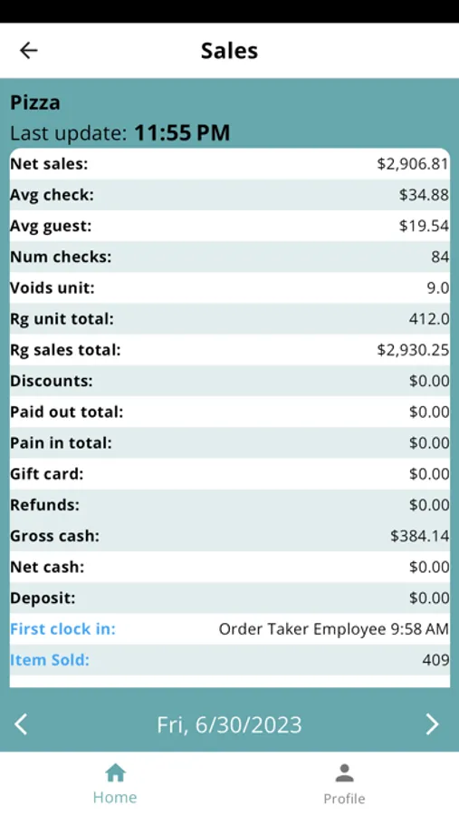 Avila report can access up-to-date sales details, time clock and items sold from all your stores.