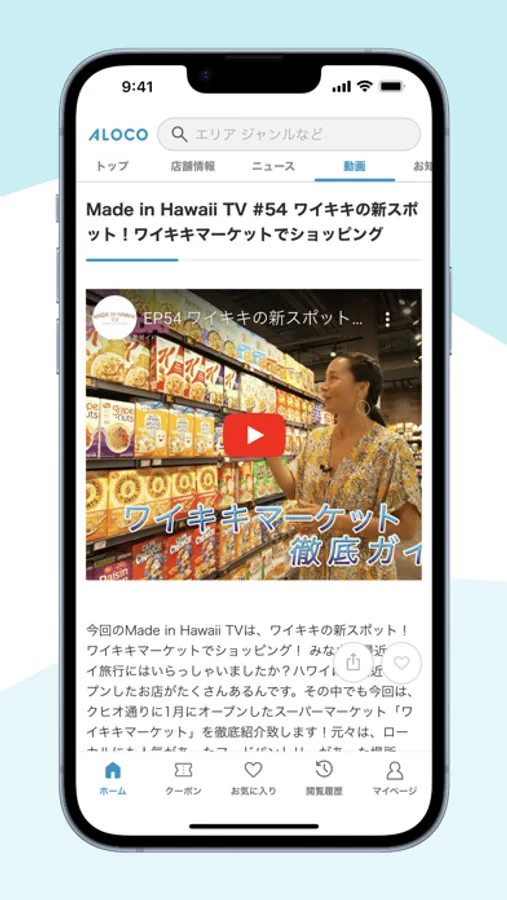 It delivers information carefully selected by Japanese living in Hawaii! From the popular spots to the hottest spots and unexplored spots that no one knows about, ALOCO brings you the "now" of Hawaii. We also distribute special coupons! For those who are going on a trip to Hawaii, for those who are still thinking about going to Hawaii, and for those who want to go but are too busy to go to Hawaii! ALOCO has a Hawaii just for you.