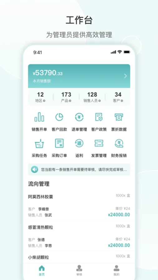 药企老板的掌上业务助手,随时随地一键清楚销售数据