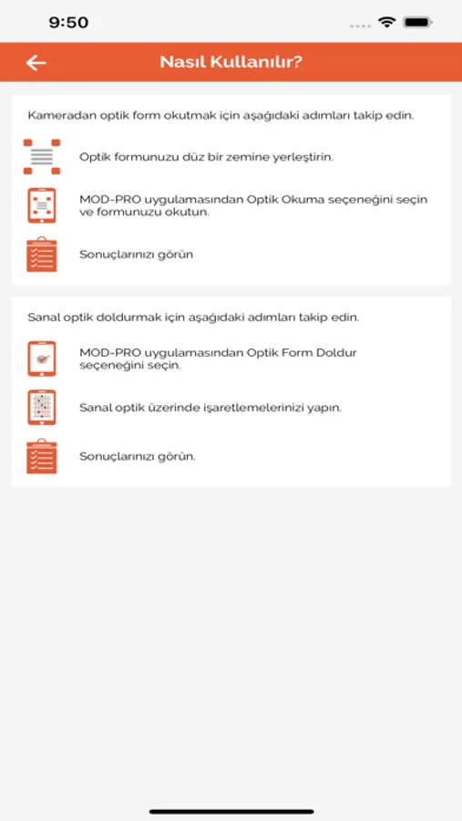 ■ Mobil Optik Değerlendirme uygulaması MOD-PRO'yu açın. Formunuzu okutun.