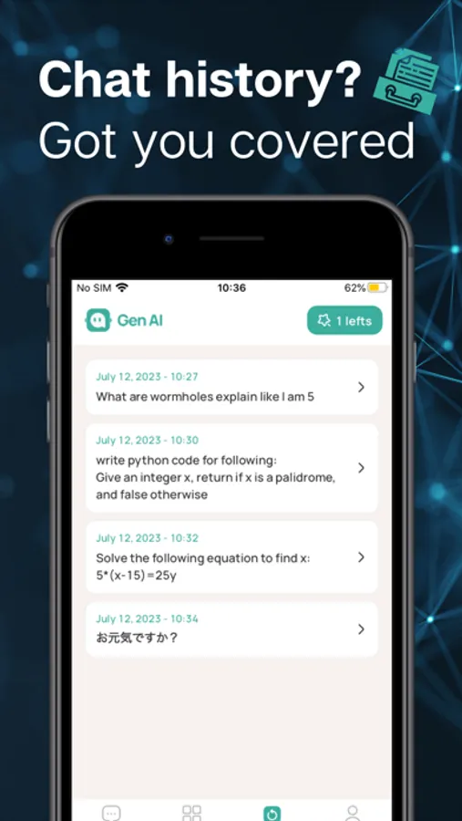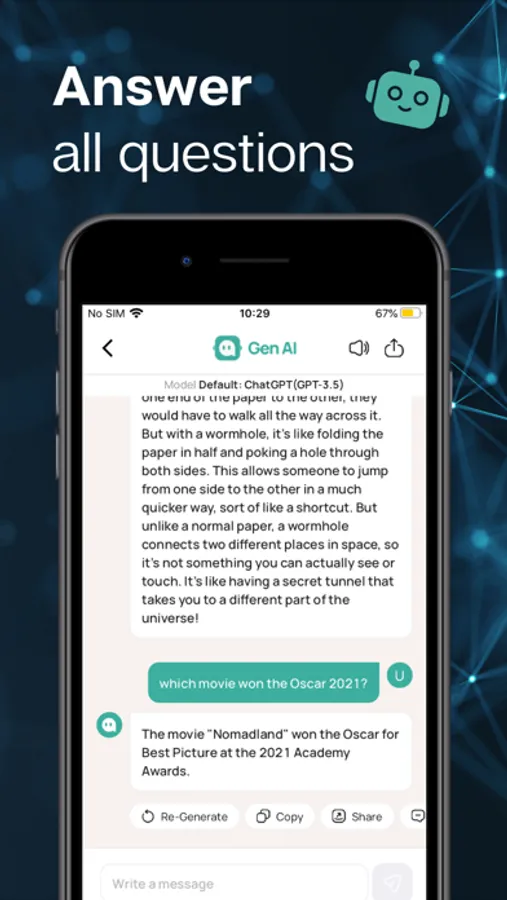 Gen AI is your gateway to a world of endless possibilities. Whether you're seeking a virtual friend, instant answers, or simply looking to have some fun, our advanced chatbot is here to cater to your every need. Engage in natural and intuitive conversations that mirror real human interaction, as Gen AI comprehends context, learns from past exchanges, and adapts to your unique communication style.