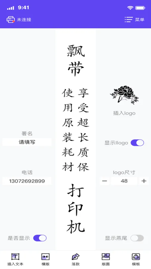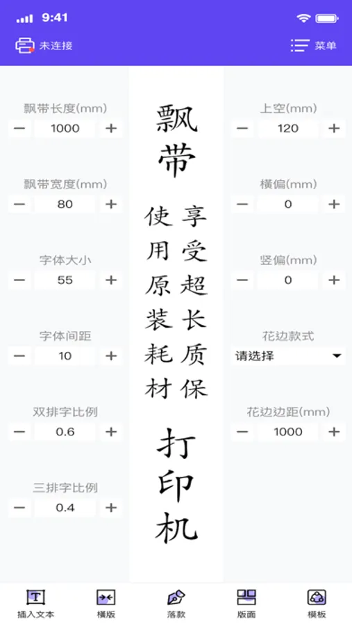 飘带打印 app, 可按需自定义打印所需的飘带内容。