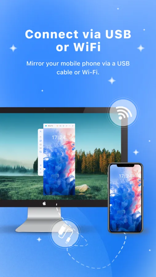 The application needs to be used with a desktop program. To get the desktop application, please go to the official website and download MirrorTo PC