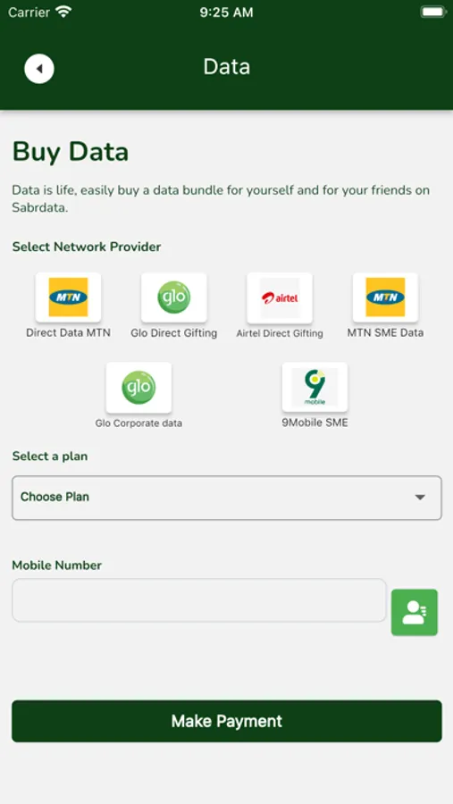 SabrData offers fast and easy access for purchasing data, airtime, electricity, and cable tv at unbeatable rates. It supports major electricity discos and cable tv providers in Nigeria. Join today and enjoy benefits alongside millions of Nigerians who trust this platform.
