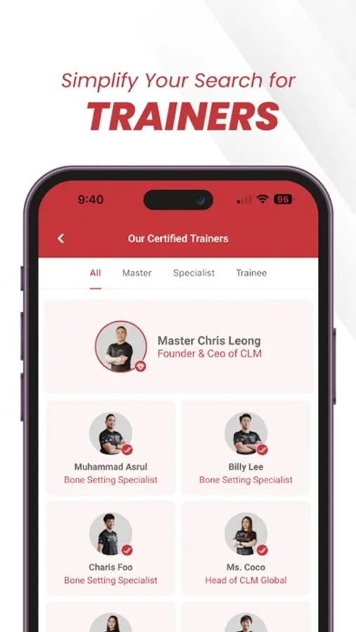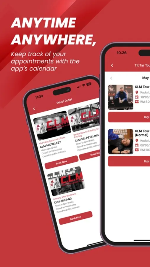 CLM Mobile App also offers an easier way to receive updates and book Master Chris Leong's world tours, including schedules, locations, and details about the events.