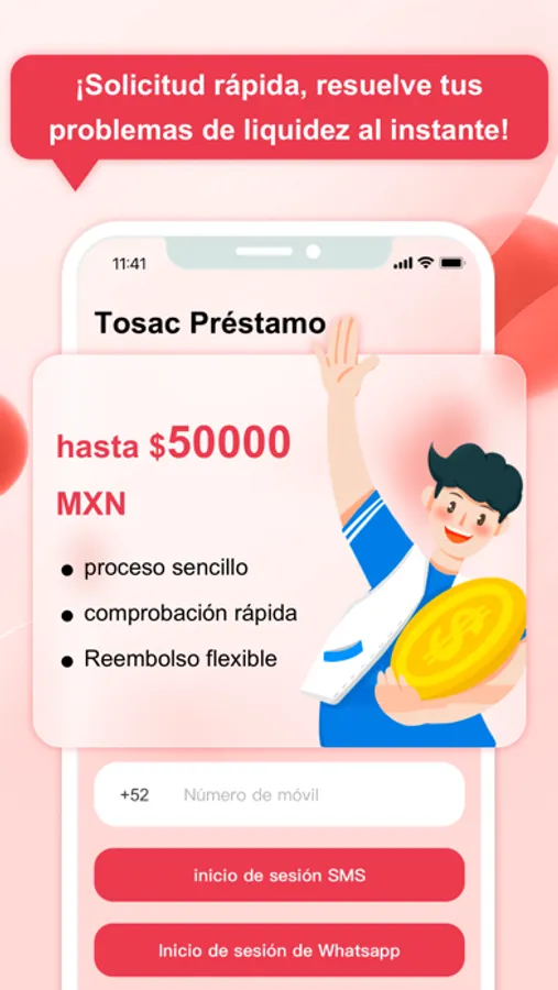 Tosac Préstamo un producto de préstamo de crédito en línea, aprobación y depósito inmediato, seguro y conveniente. Con un alto monto y bajo interés, que pueden satisfacer sus necesidades de consumo diario, sin ningún tipo de garantía, operación simple, aprobación inmediata y el préstamo se deposita directamente en la cuenta bancaria.