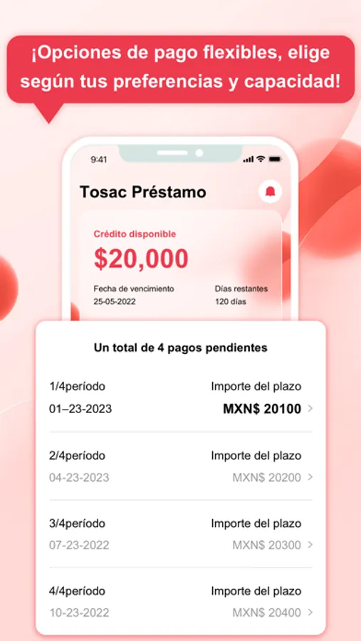 • Límite de crédito: Desde $1,000 hasta $20,000 pesos.