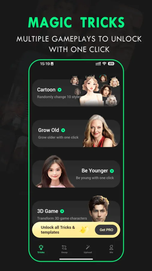 2、Age Transformation: Get a glimpse of your past and future self! With age-changing effects, MaskFace can swiftly age or de-age your face, offering a unique perspective on your appearance.