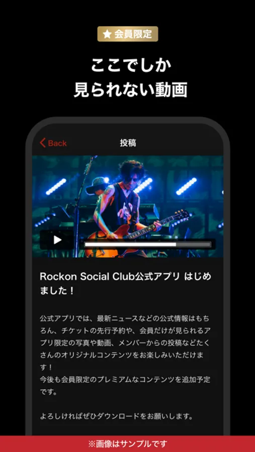 最新ニュースなどの公式情報はもちろん、チケットの先行予約や、会員だけが見られるアプリ限定の写真や動画、メンバーからの投稿などたくさんのオリジナルコンテンツをお楽しみいただけます。