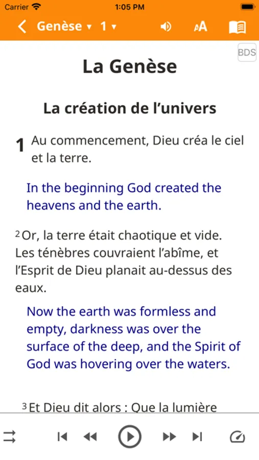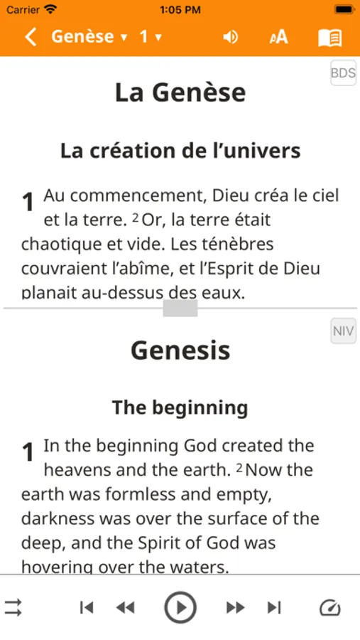 Biblica New International Version en anglais qui peut être lue côte à côte ou verset par verset avec la traduction française.