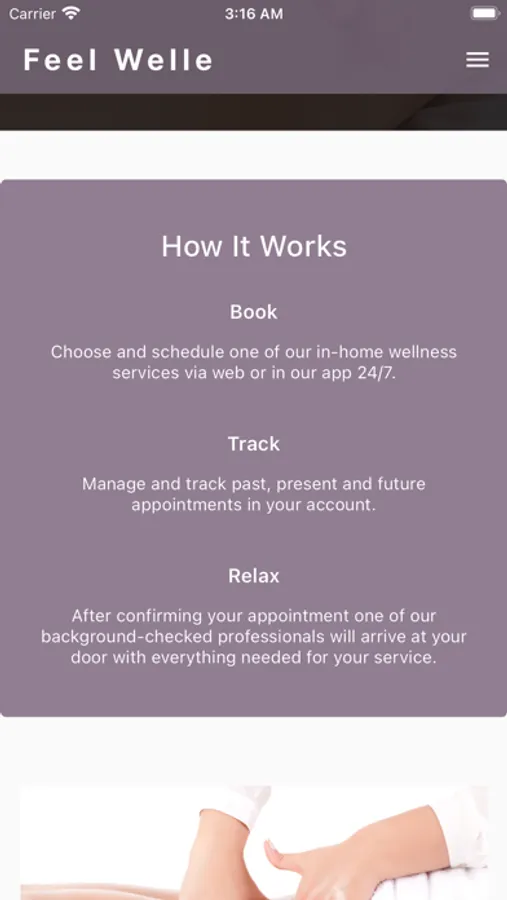 Simply choose the type of service you want, the time and place you want the specialist to arrive, and Feel Welle will match you with the best provider for your service.