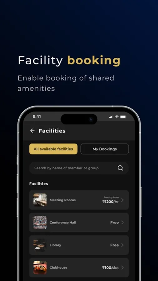4. Facilities Booking - Instantly book a wide range of top-notch facilities.