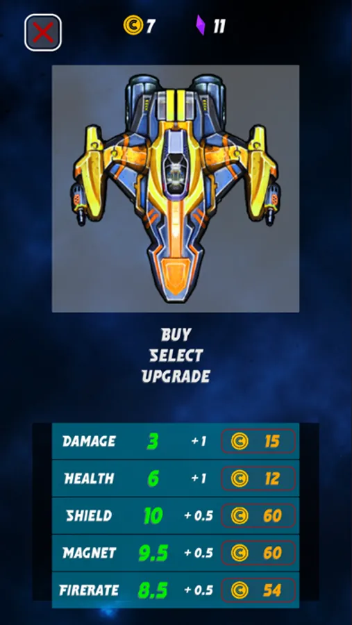 - Upgrade system for enhancing the player's spaceship