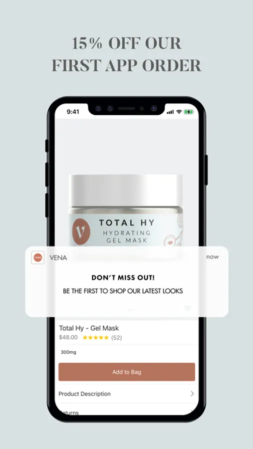 Download the Vena app to access exclusive discounts, early access to collection launches. Everything you love, right at your fingertips.
