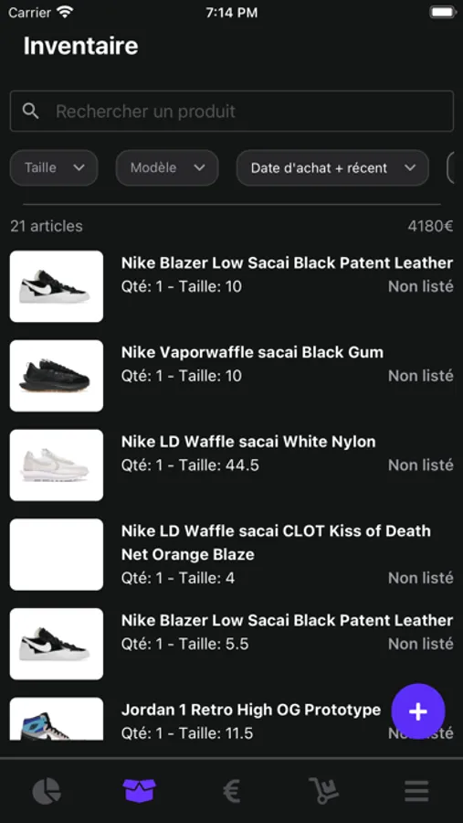Scannez vos paires pour les ajouter directement à votre inventaire, suivez les côtes de vos paires en temps réel, calculez automatiquement votre bénéfice, suivez l’acheminement de vos colis.